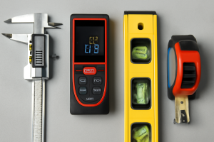 مترهای لیزری برای اندازهگیری فاصلهها به صورت دقیق و سریع استفاده میشوند. این ابزارها معمولاً گرانتر از مترهای معمولی هستند، اما دقت بسیار بالاتری دارند.